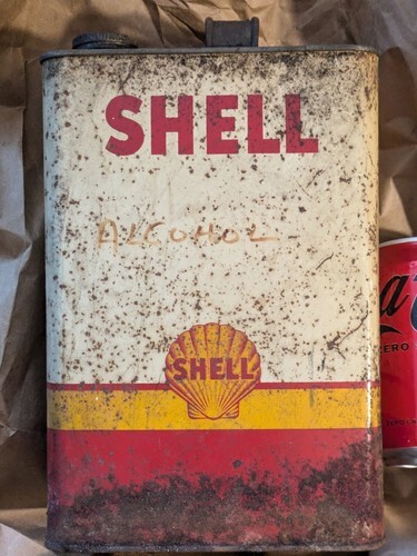 - Vintage Shell Oil Company Metal Can 1 Gallon 3.79 Litter Petrofina