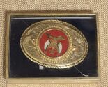 Vintage Shriners Logo Masonic Gold Tone & Red Oval Belt Buckle Made in USA