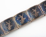 Vintage Siamois Argent Sterling Et Niello Gravé Lien Panneau Bracelet