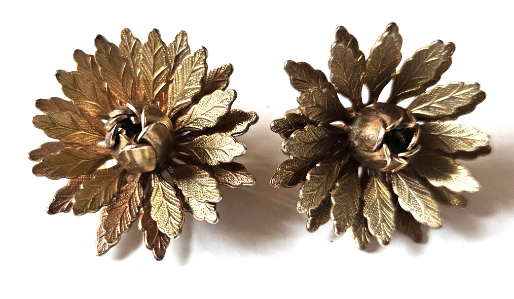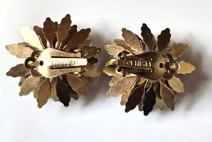 - Vintage Signed Lisner Gold-tone Flower Clip-on Earrings 1.1/4" Diameter