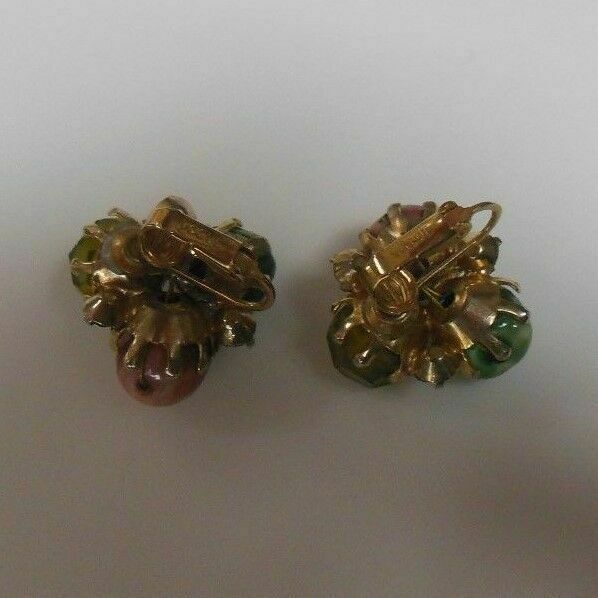 Vintage Signed Vogue Glass Bead & Green Rhinestone Clip-on Earrings
