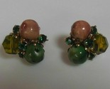 - Vintage Signed Vogue Glass Bead & Green Rhinestone Clip-on Earrings