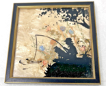 Vintage Silhouette Picture Boy His Dog Fishing Pressed Flowers 5.5 x 5.5 Inch