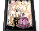Vintage Silhouette Picture Victorian Woman Purple Gown at Wishing Well Pressed Flowers 4.5 x 5.5 In nice shape flowers still have good color