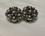 - Vintage Silver Ball Cluster Clip Earrings Retro Textured Beads 60s Statement