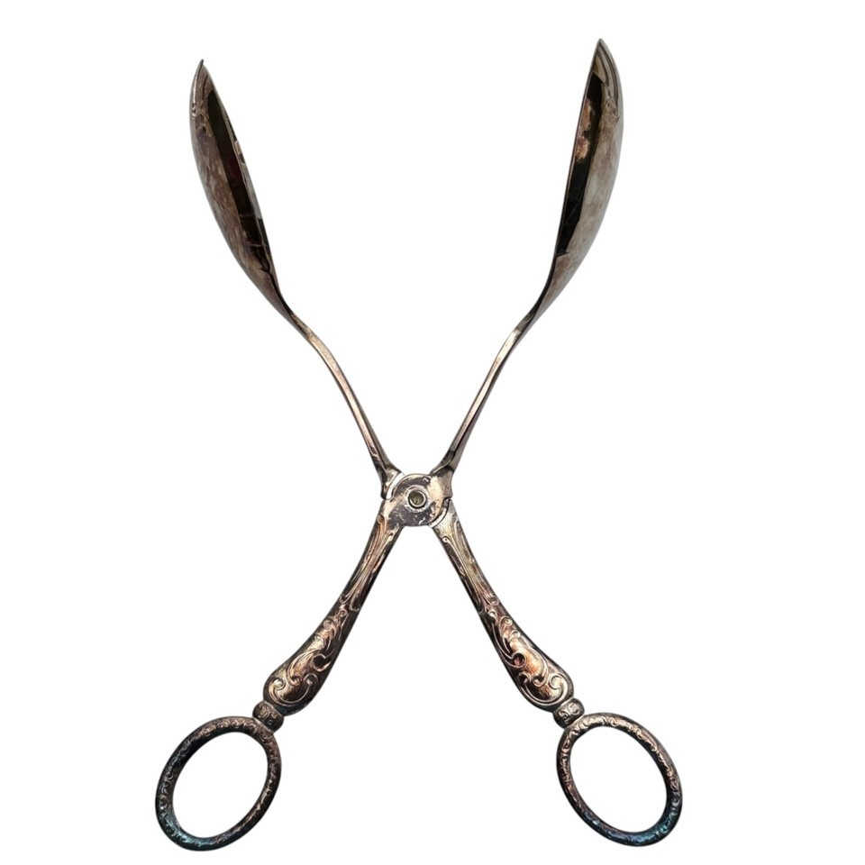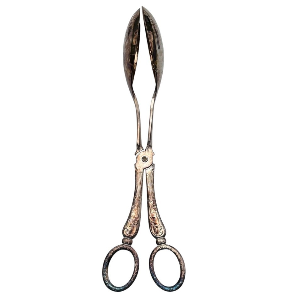 - Vintage Silver-Plated Sheffield England Ornate Pastry Tongs With Intricate Engra