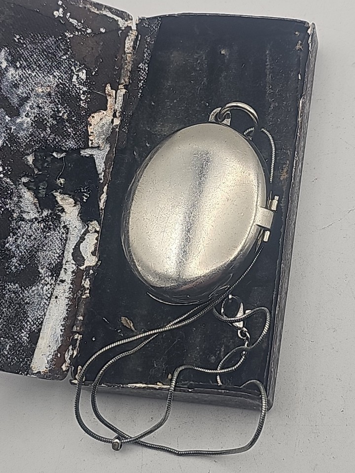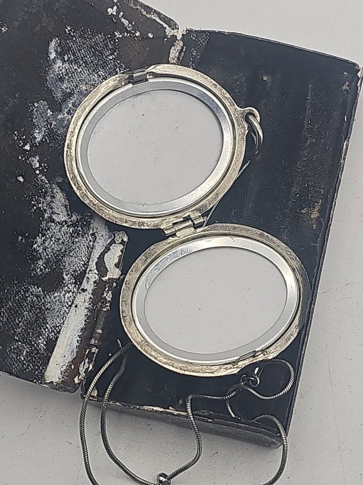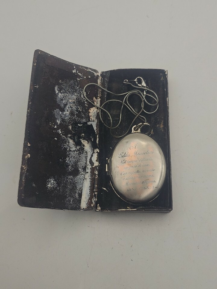 - Vintage Silver-Tone Locket Pendant with Inscription Dedicated to Edda Mussolini