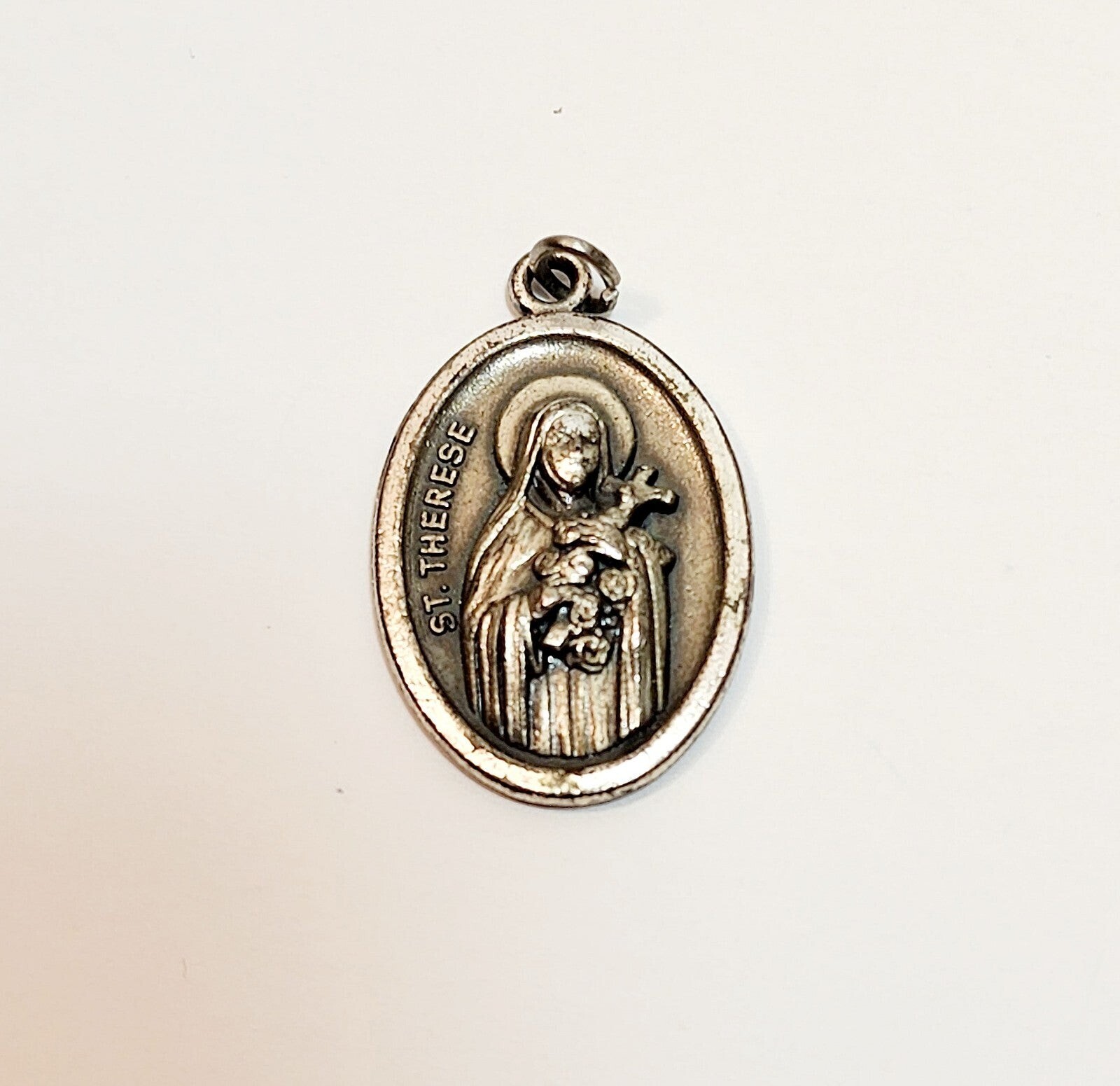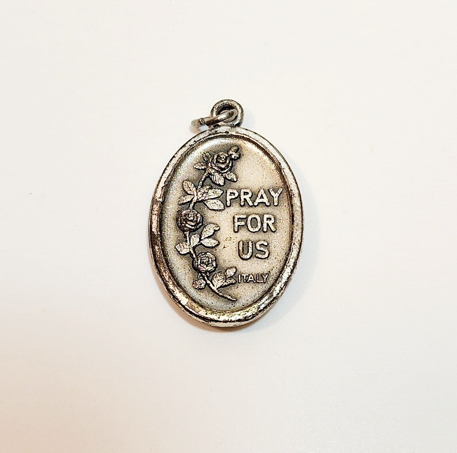 - Vintage Silver Tone Saint Theresa Pendant Charm Italy Pray For Us All 1"
