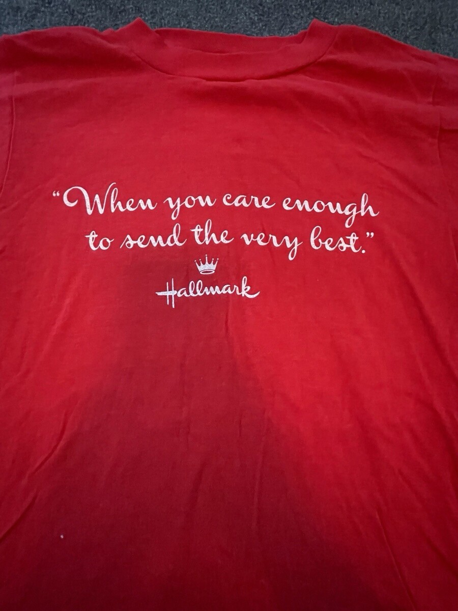 - Vintage Single Stitch Hallmark Red Medium Shirt Alore Made in USA