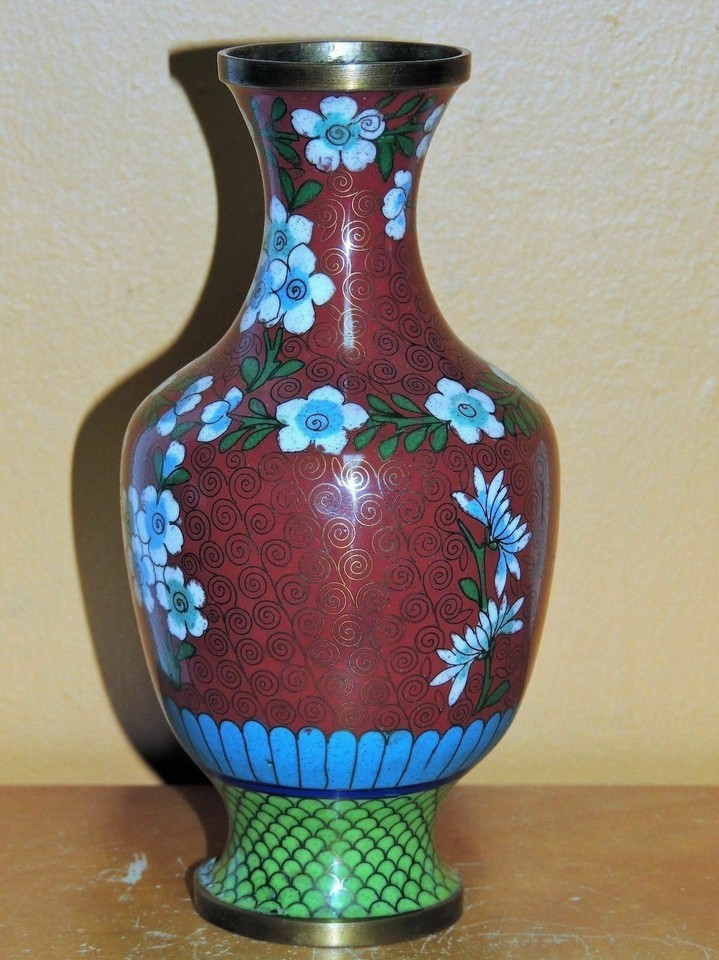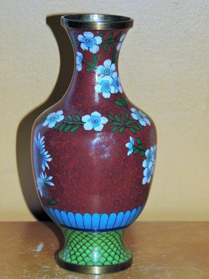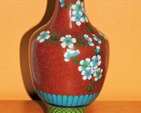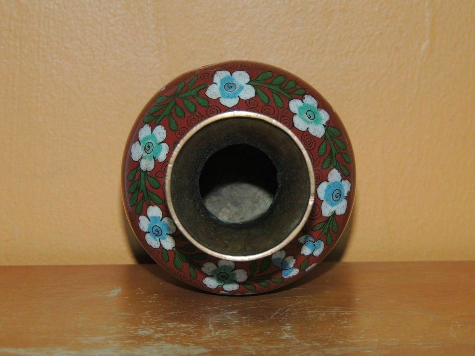 - Vintage Small Cloisonne 6" Vase Red Enamel Stone Copper China Antique