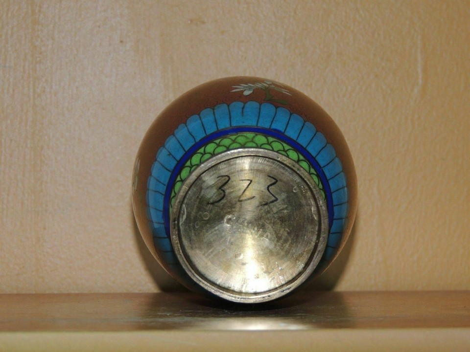 ONE CLOISONNE VASE, ENAMEL AND STONE OVER COPPER, STAMPED "CHINA". PLEASE LOOK AT THE PICTURES CAREFULLY AS I AM NOT AN ANTIQUITIES EXPERT.