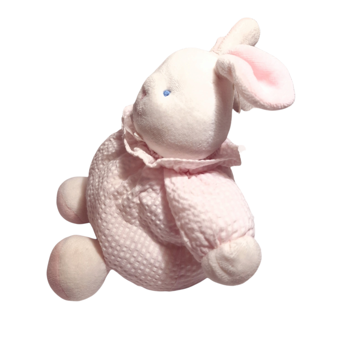 - Vintage Soft Dreams Bunny rabbit Plush pink white seersucker baby girl squeaks