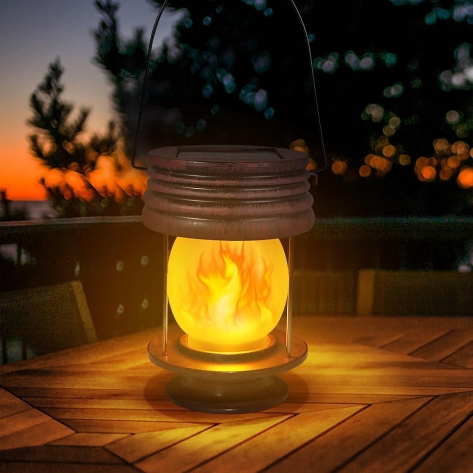 Vintage Solar Lanterns with Flickering Flames - 2 Pack
