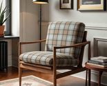 Product description: Transform your living space with this exquisite vintage solid wood armchair, featuring a sophisticated plaid upholstery that adds character to any room. The elegant open frame showcases artisanal craftsmanship with graceful curves and warm wood finishes that complement both modern and traditional decor. Measuring 31.50" high, 27.56" wide, and 26.38" deep, this chair offers generous proportions while remaining perfect for compact spaces like apartments, bedrooms, or cozy reading nooks. The plush seat and supportive back provide exceptional comfort for hours of relaxation, while the ergonomic armrests enhance the lounging experience. Durably constructed with quality joinery and premium materials, this versatile piece works beautifully in living rooms, balconies, boutique accommodations, or as a statement accent in any thoughtfully designed interior. The classic plaid pattern adds timeless appeal that elevates your space with distinctive style.