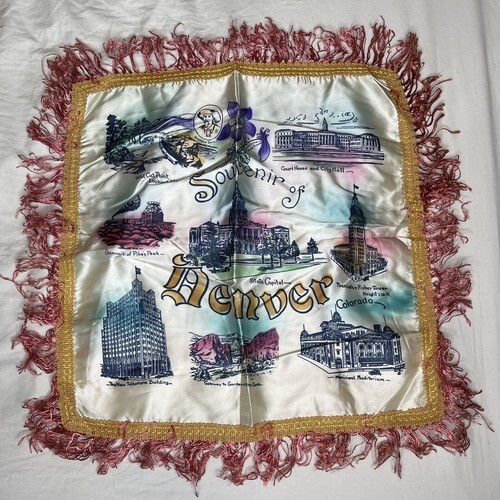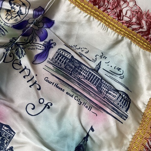 - Vintage Souvenir of Denver Satin &Fringe Pillowcase Square 17"x18"
