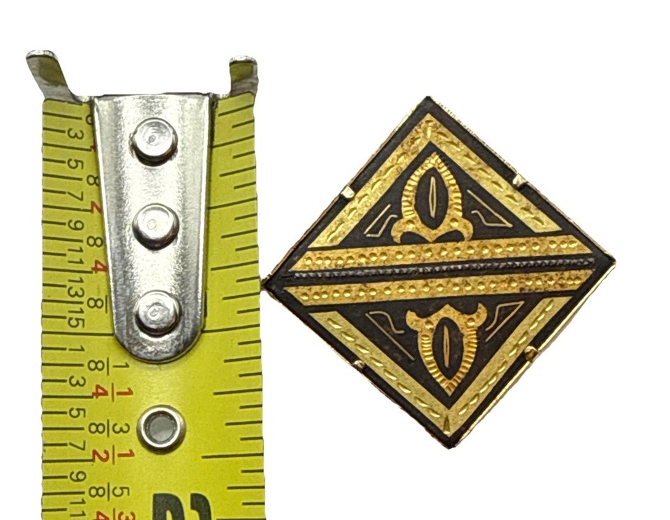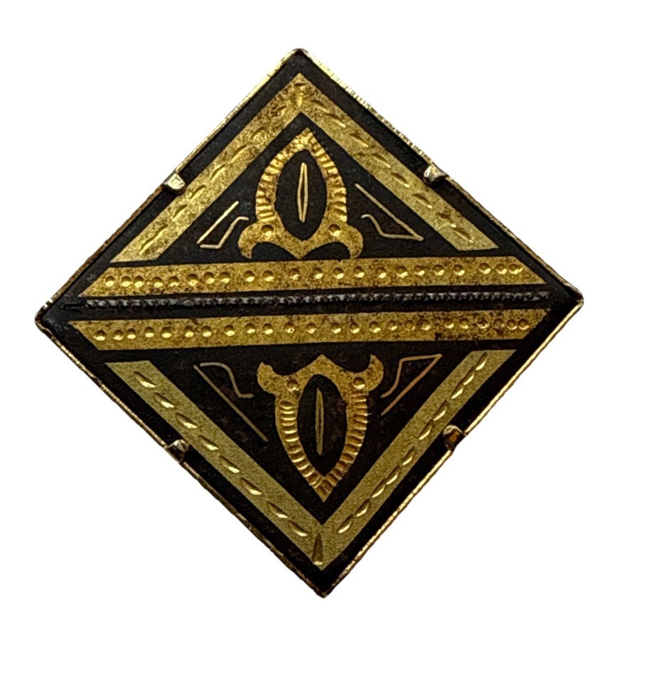 - Vintage Spanish Damascene Square Brooch Pin Prong Set & Trombone Clasp