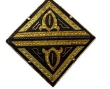 This vintage Spanish Damascene square brooch pin features a unique design with a prong set black tile and trombone clasp. The gold leafing in this is absolutely incredible.