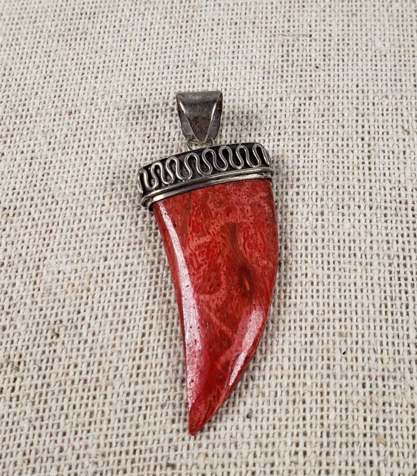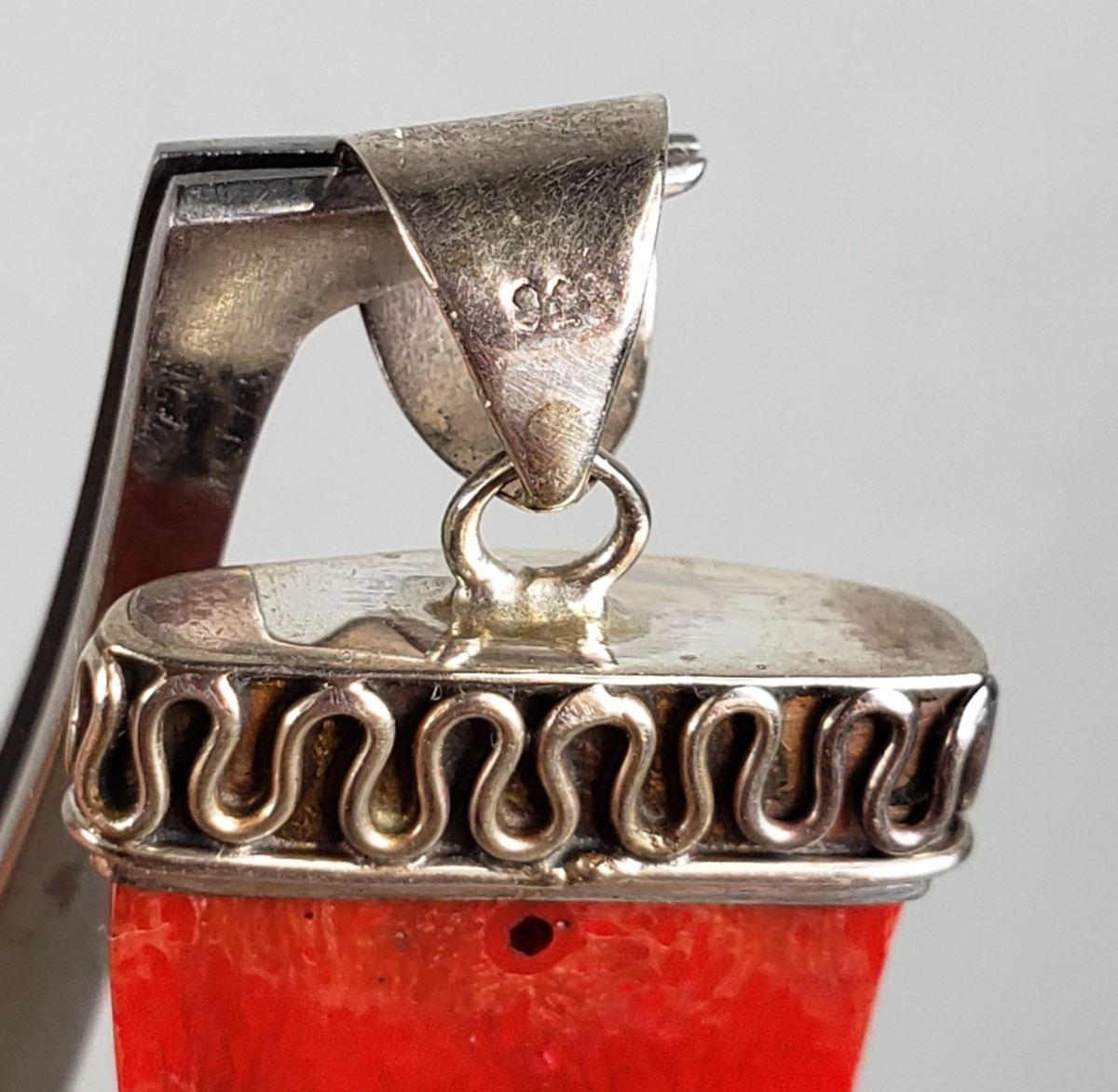 - Vintage Sponge Red Coral 925 Setting Pendant