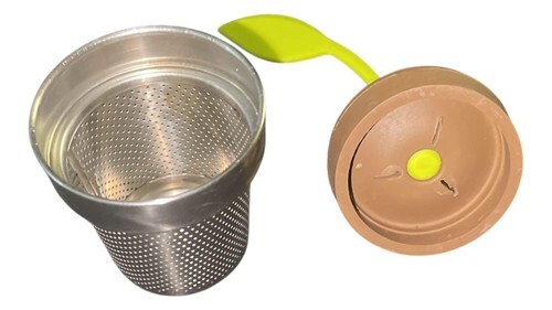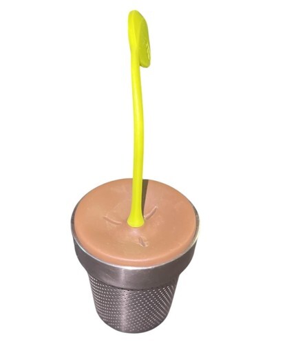 This is a vintage stainless steel tea infuser with a charming green leaf handle. Gently used only twice, it's in excellent condition and fully functional. The fine mesh basket ensures effective steeping of loose leaf tea or herbs, while the silicone top allows for easy handling and adds a whimsical touch.