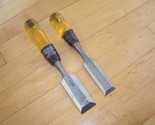 The Vintage Stanley 1-1/4" Contractor Grade Wood Chisel (16-909) and #60 Chisel are high-quality tools crafted in the United States by the renowned brand Stanley. These vintage original chisels are perfect for woodworking and carpentry projects, showcasing the durability and precision craftsmanship that Stanley is known for. Whether you're a collector or a professional woodworker, these chisels are sure to add a touch of nostalgia and practicality to your tool collection. Wear tear on both of them. 1 1/4" is in pretty good condition. Lot of 2.
