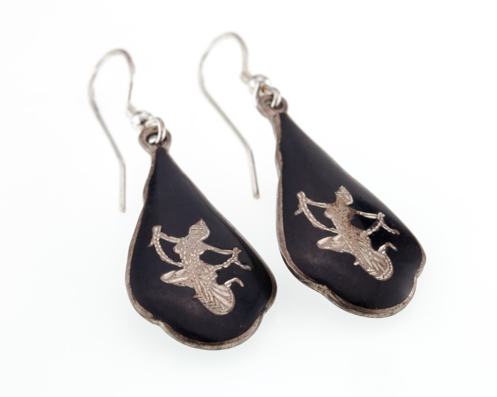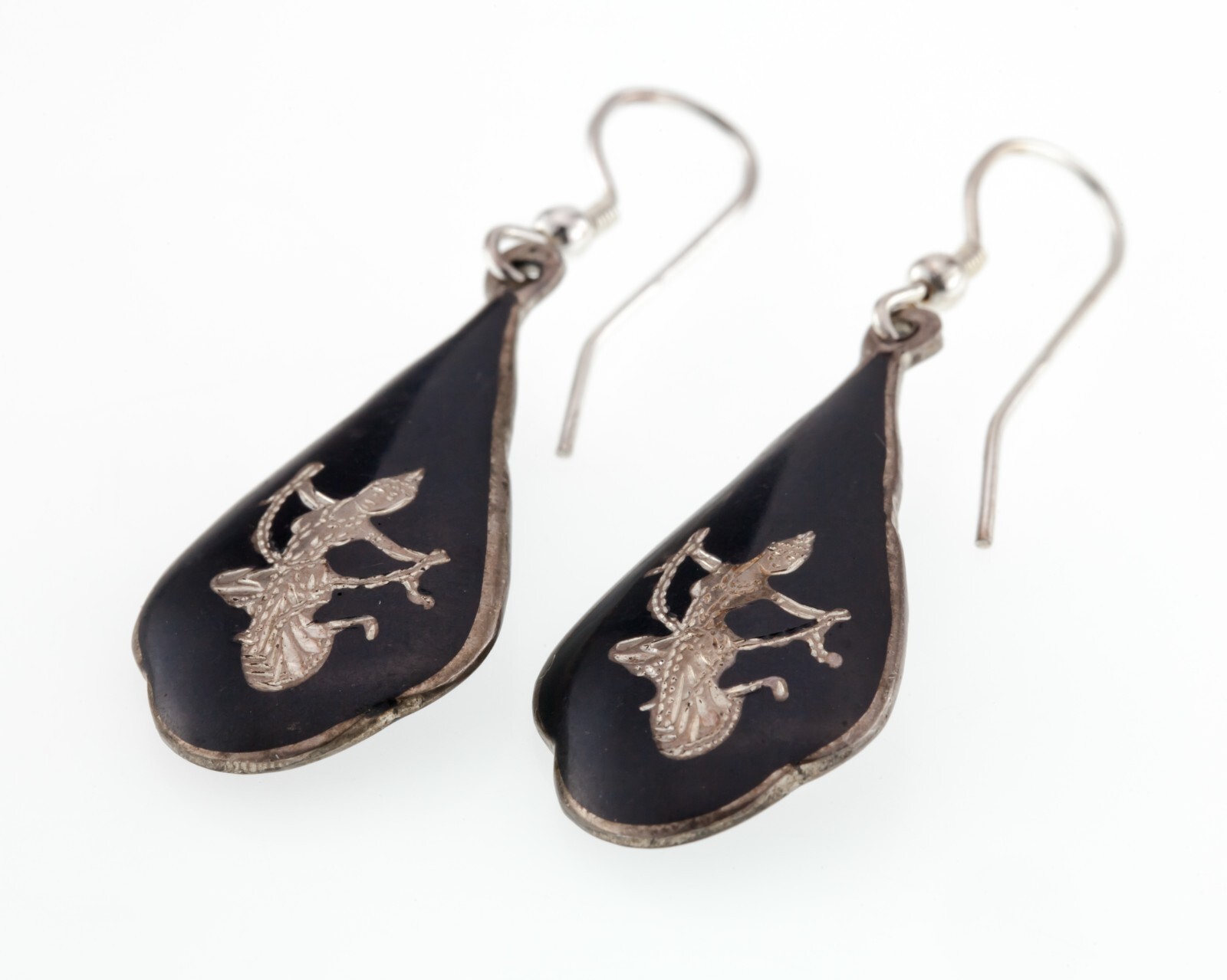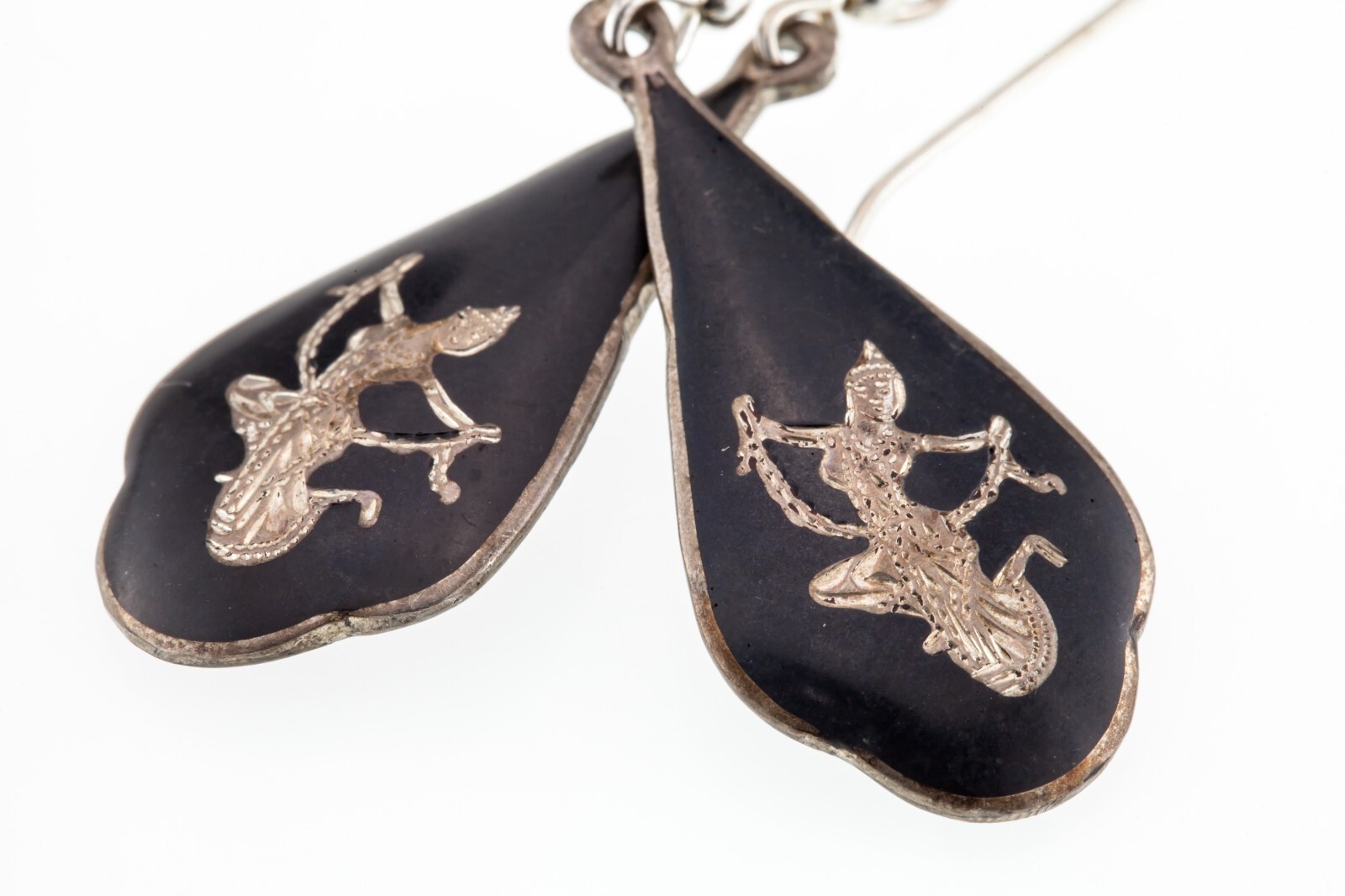 Vintage Sterling Silber Siam Niello Geatzte Tropfen Ohrringe Beidseitig