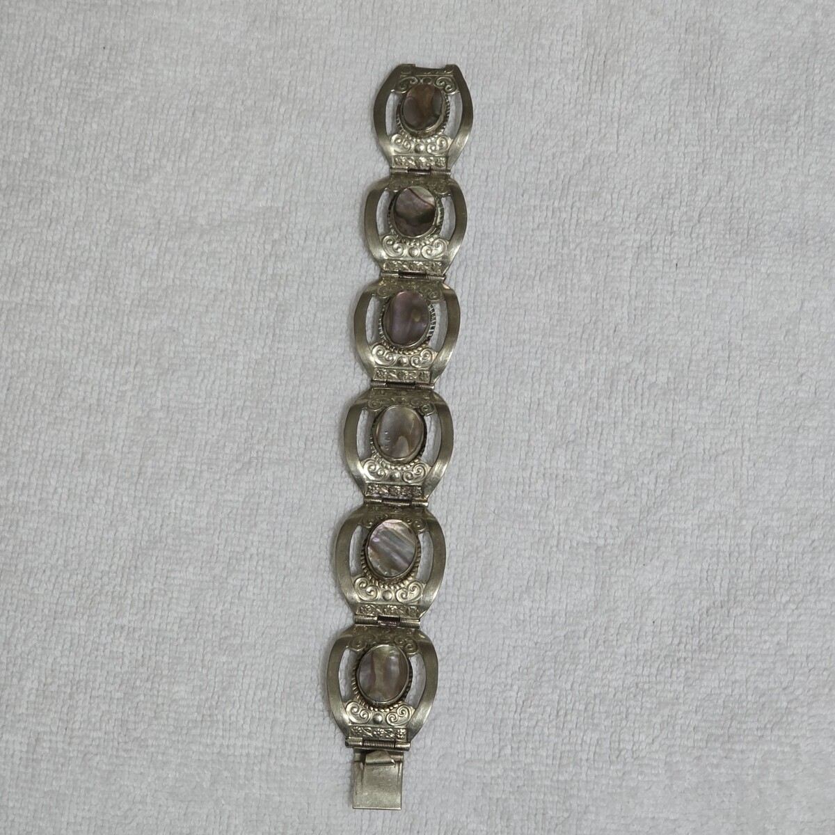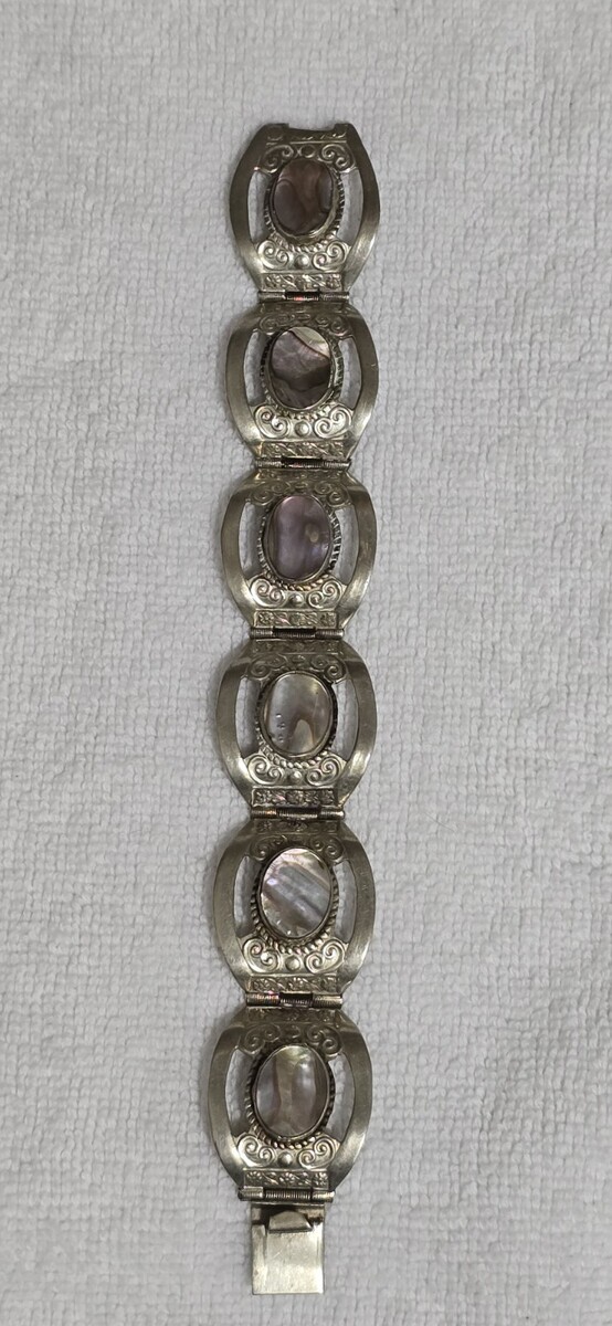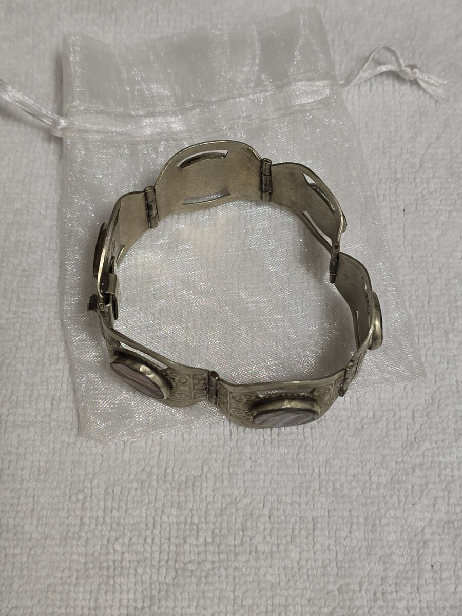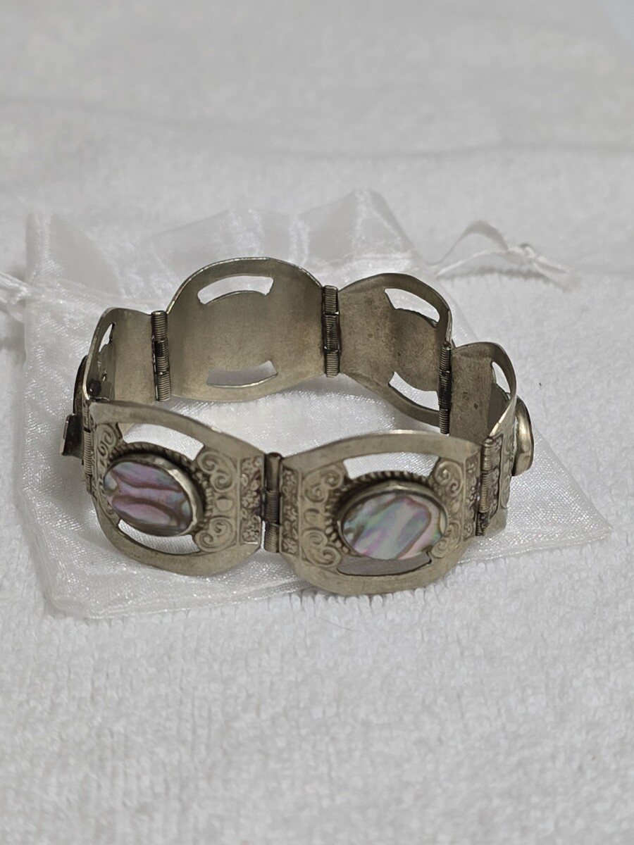 - Vintage Sterling Silver Abalone Inlay 6 Panel Bracelet 7 ¹/⁸ Handcrafted