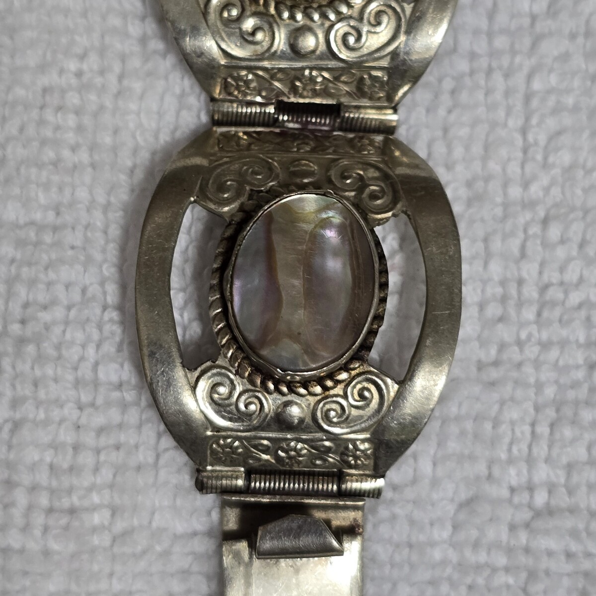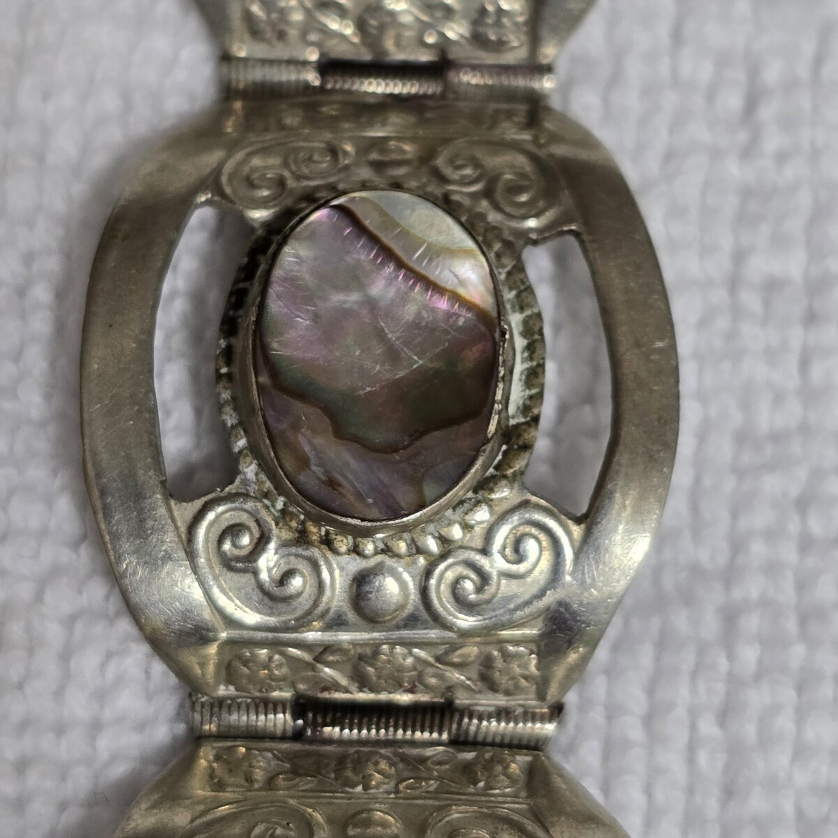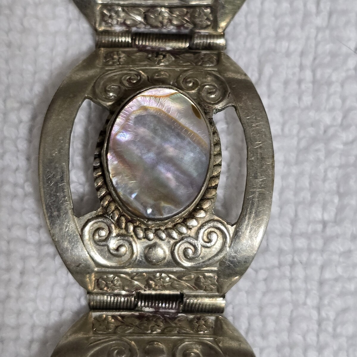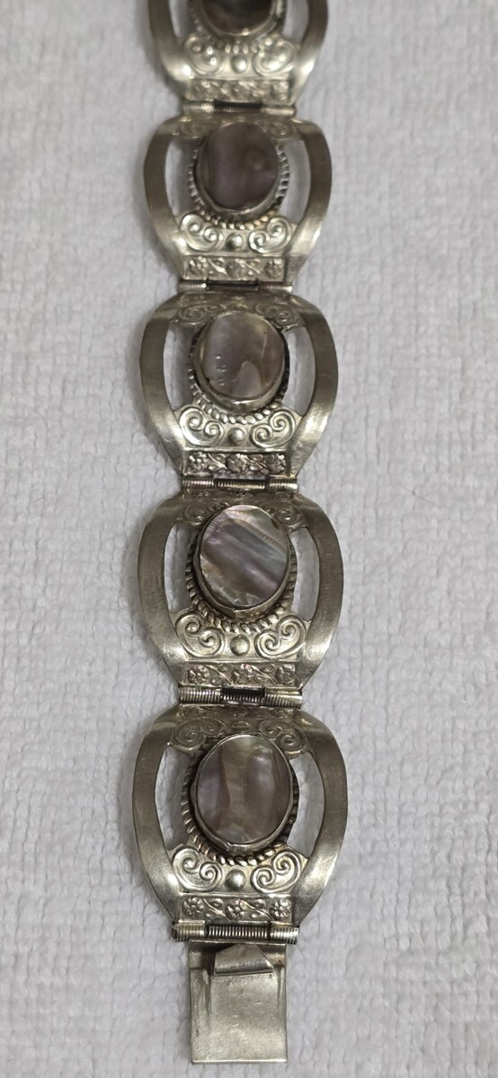 - Vintage Sterling Silver Abalone Inlay 6 Panel Bracelet 7 ¹/⁸ Handcrafted