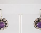 - Vintage Sterling Silver Amethyst Cabochon Dangle Earrings with Hook Backs