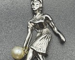 - Vintage Sterling Silver Bowling Charm Faux Pearl Woman Bowler Figural 1" Pendant