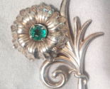 - Vintage Sterling Silver Flower Brooch Pin Green Rhinestones 2.5"