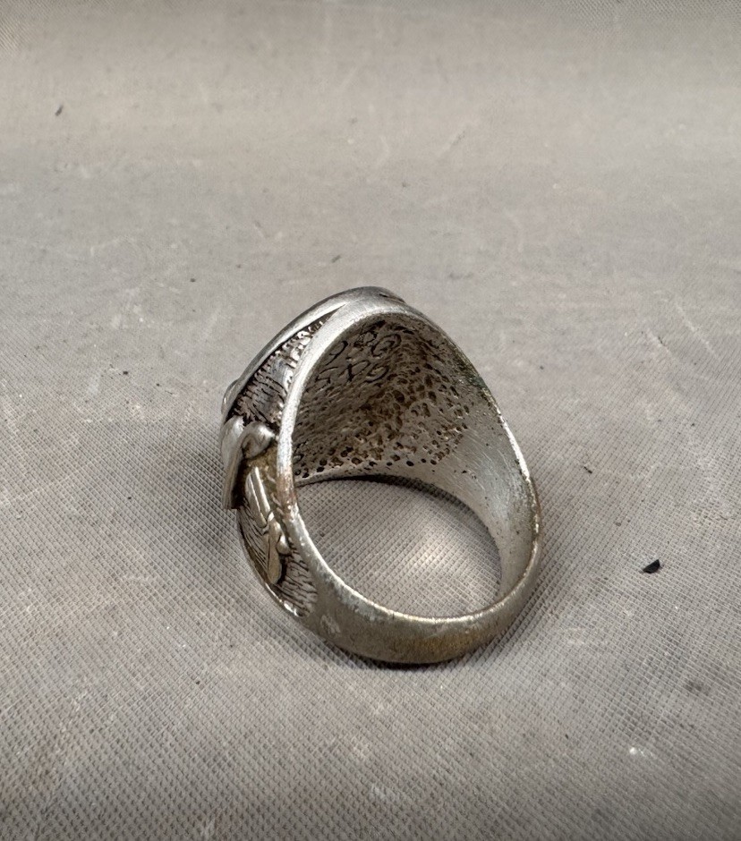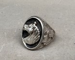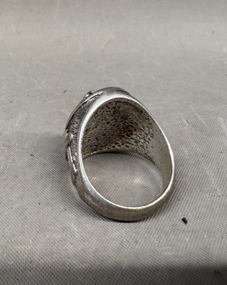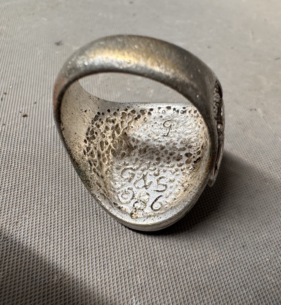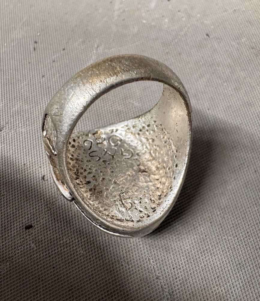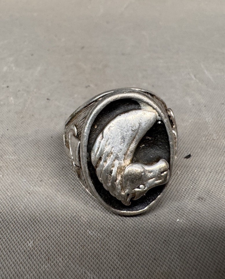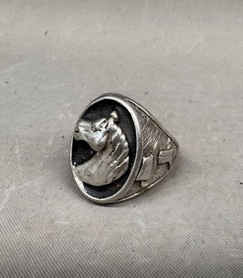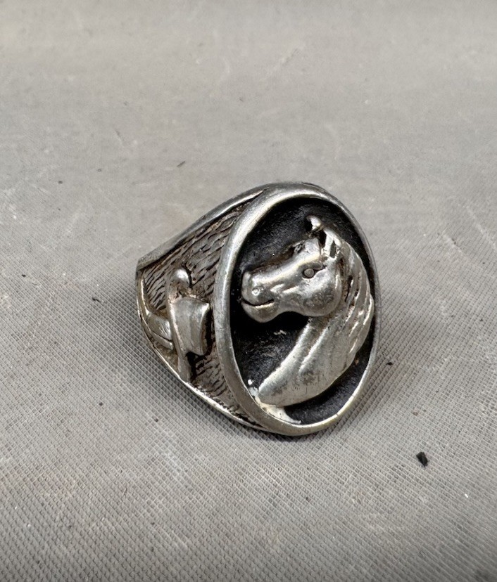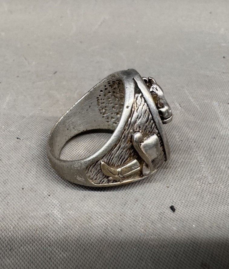 Neat vintage western style sterling silver horse ring with cowboy boots and hat