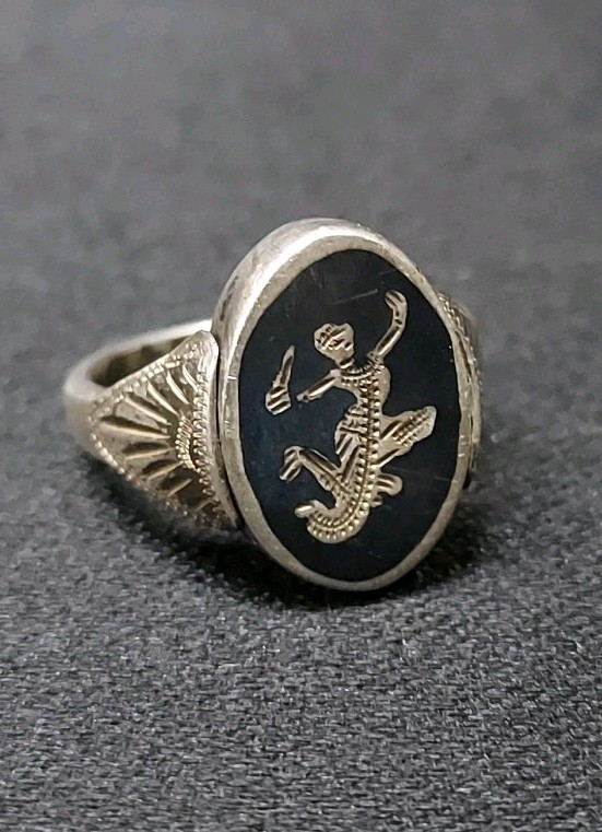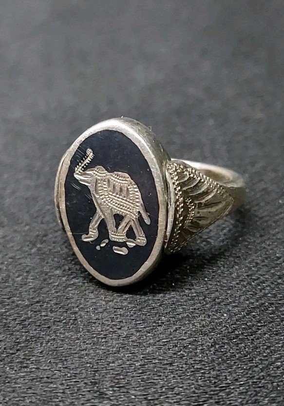 - Vintage Sterling Silver Reversible Elephant Spinning Oval Ring Size 4.5