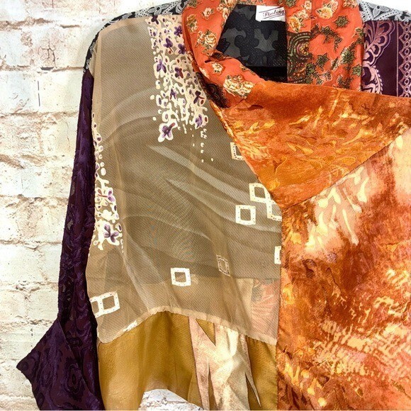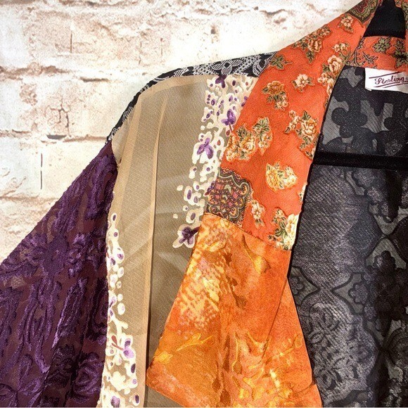 Vintage Sterling Styles Art Silk Patchwork Kimono Top One Size - Open front. Multi color. One Size. Shawl collar that drapes down, beautiful patterns and colors. Lightweight. Art Silk