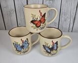 - Vintage Stoneware Mugs Set Of 3 Blue Orange Butterfly Motif Brown Rim 12 oz