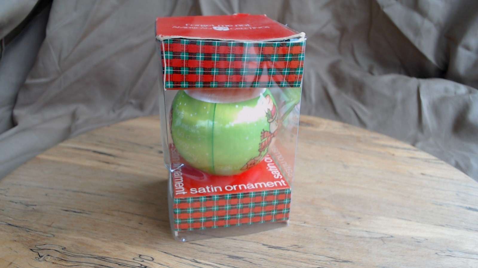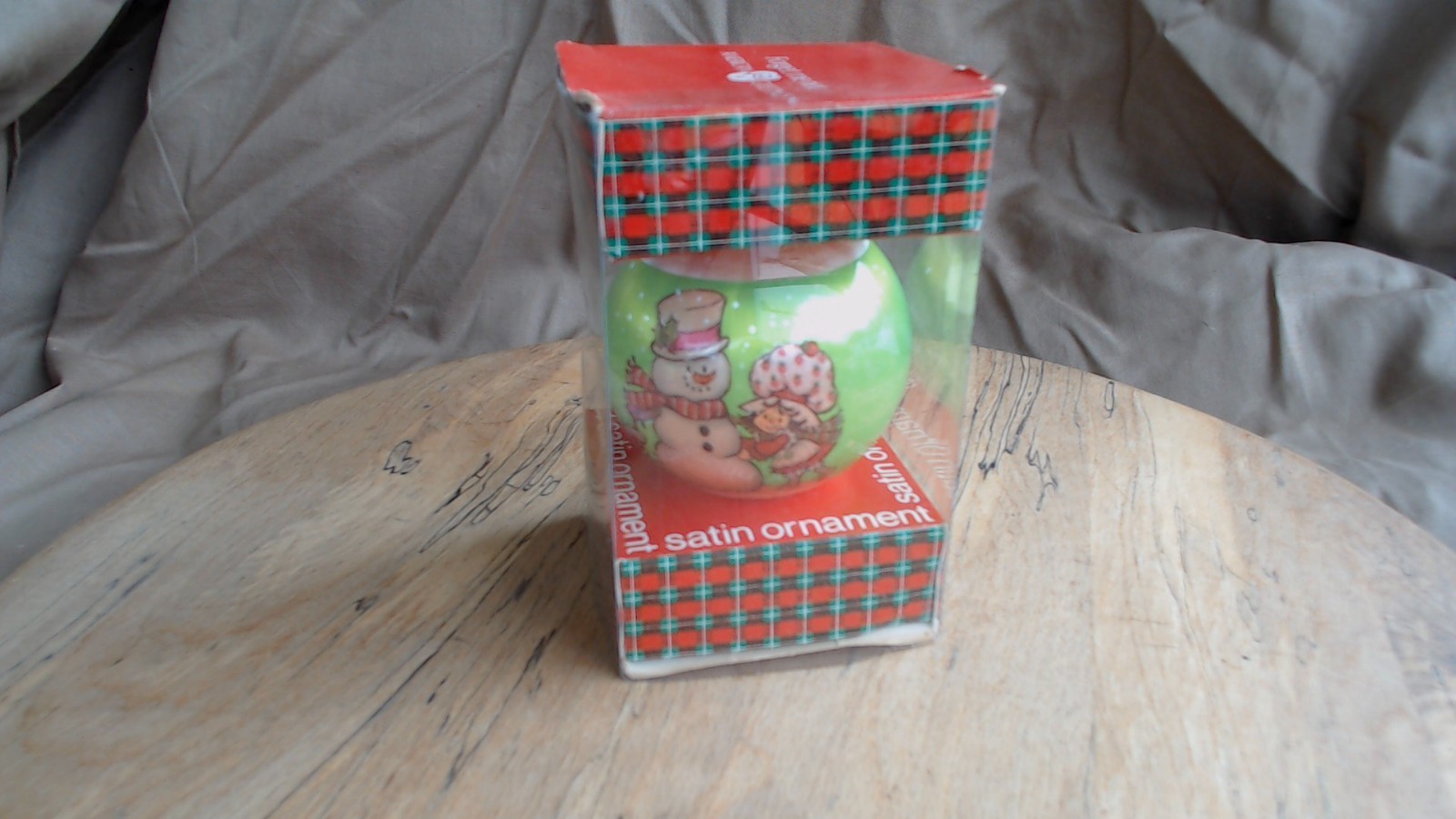 - Vintage Strawberry Shortcake Satin Ball Christmas Ornament 1980 Snowman