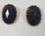 - Vintage Stud Earrings Beveled Black w/ Gold Tone 1 Inch Oval