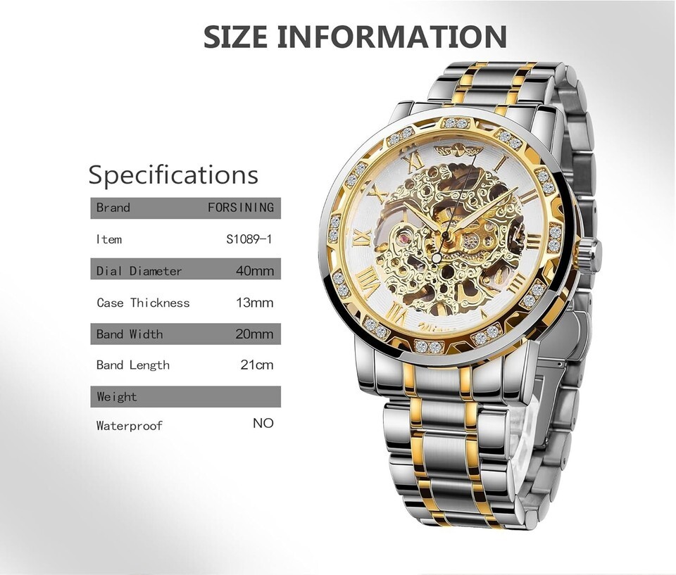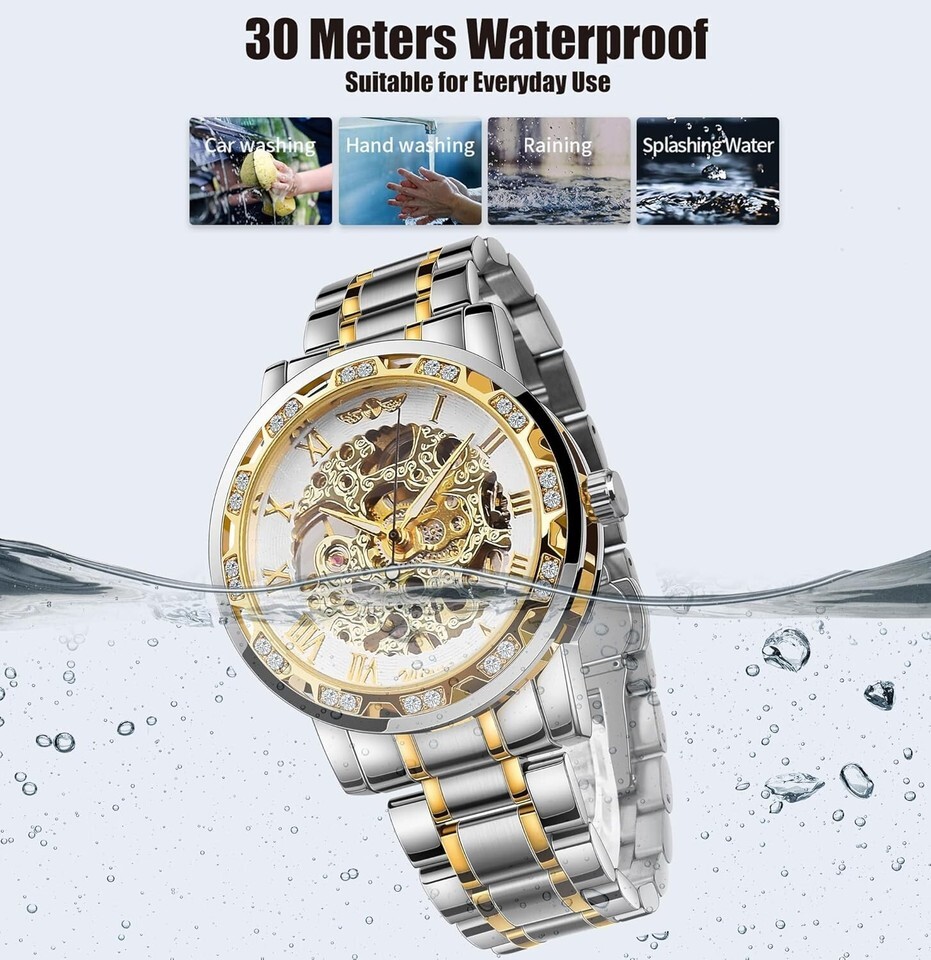 Mechanical Movement: Enjoy the art of manual self-winding; stay timeless and stylish without the worry of batteries. Remember to wind up the watch (15-20 times) to maintain its accurate time-telling.