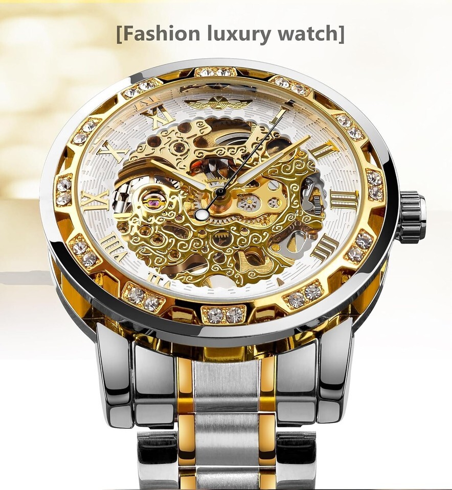 Indulge in the unique blend of luxury and artistry with our Vintage Style Skeleton Watch. The captivating 3D engravings and dazzling diamonds not only enhance its aesthetic appeal but also embody a sophisticated statement of style. This remarkable piece is designed to turn heads and prompt compliments, making it a desired accessory for any gentleman.
