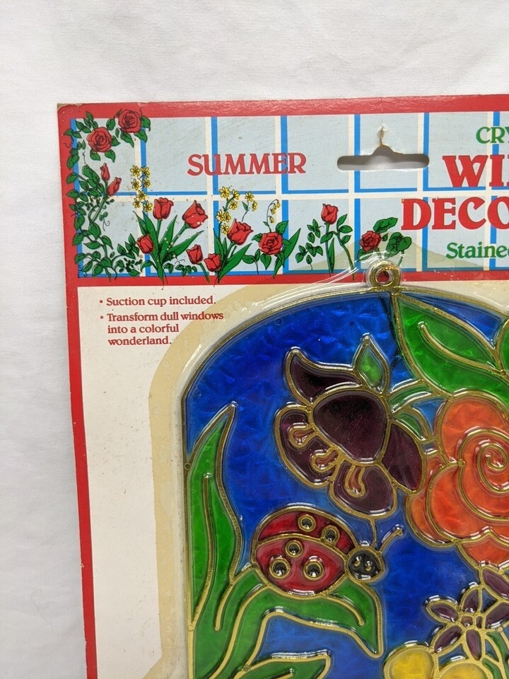 - Vintage Summer Ladybug Crystalline Window Decoration Stained Glass-Look