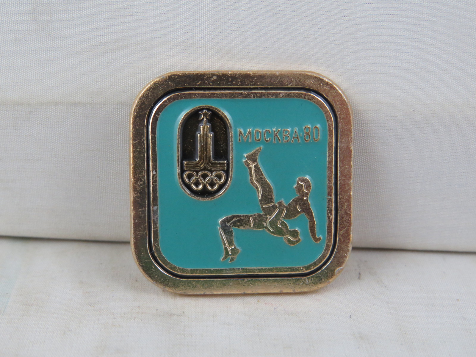 Up for sale is a vintage Summer Olympic Pin. It is from the 1980 Summer Games which were held in Moscow. It has a blue base colour with a gold outer ring. The body of the pin has the official 1980 Summer Games logo stamped in with Moscow 80 beside it. Underneath is an image of 2 wrestlers doing a suplex stamped in. What a great addition to any collection.