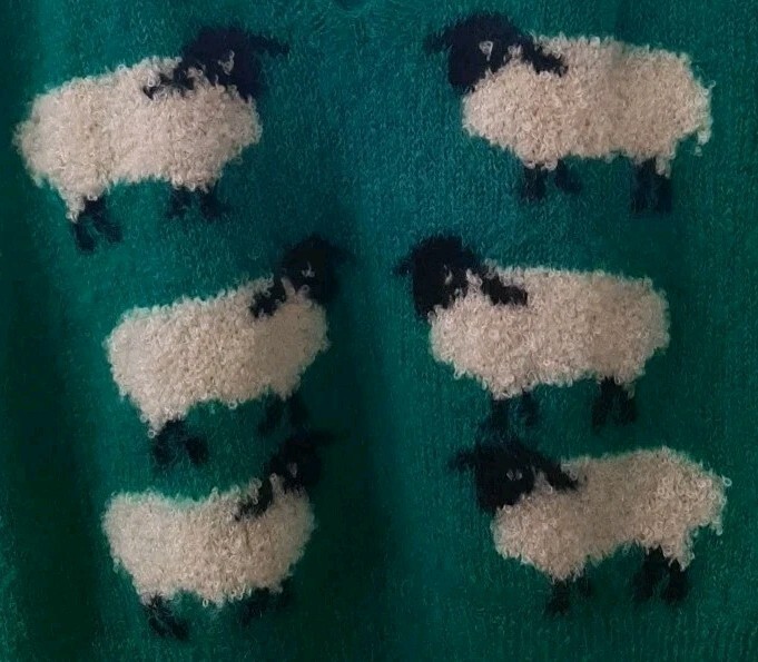 vintage 70s 80s Susie Lee sheep sweater vest Kent England mohair wool nylon blend 1970 1980 picture scene v-neck vest XL