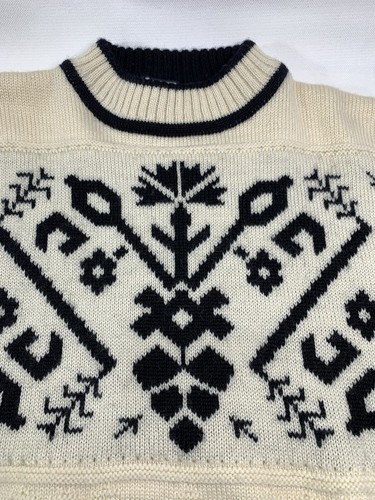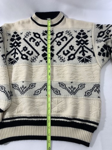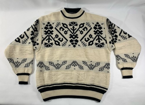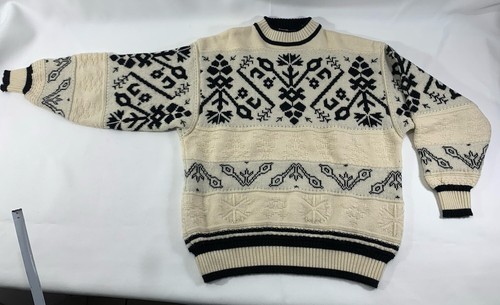 - Vintage Sweater Wool Acrylic Knit Snowflake Off White / Black Small Mens