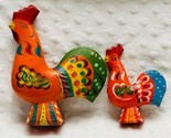 Vintage Swedish Folk Art, Hand-Carved, Hand-Painted Dala Roosters (6.5" & 4.5")