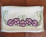 - Vintage Table Runner Handmade Applique 32x14 Inch Purple Flowers