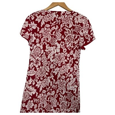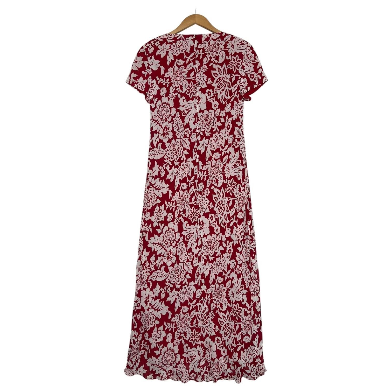 - Vintage Talbots Dress Womens 8 Red White Floral Maxi Short Sleeve Y2K Retro 2000