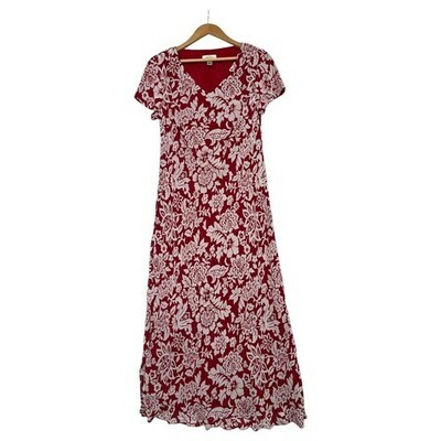 VTG Talbots Dress Womens 8 Red White Floral Maxi Short Sleeve Lined Elegant