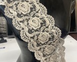 Vintage Tan Embroidered Rose Flower Double Scalloped Lace Tulle Trim 5.5”/ Yard