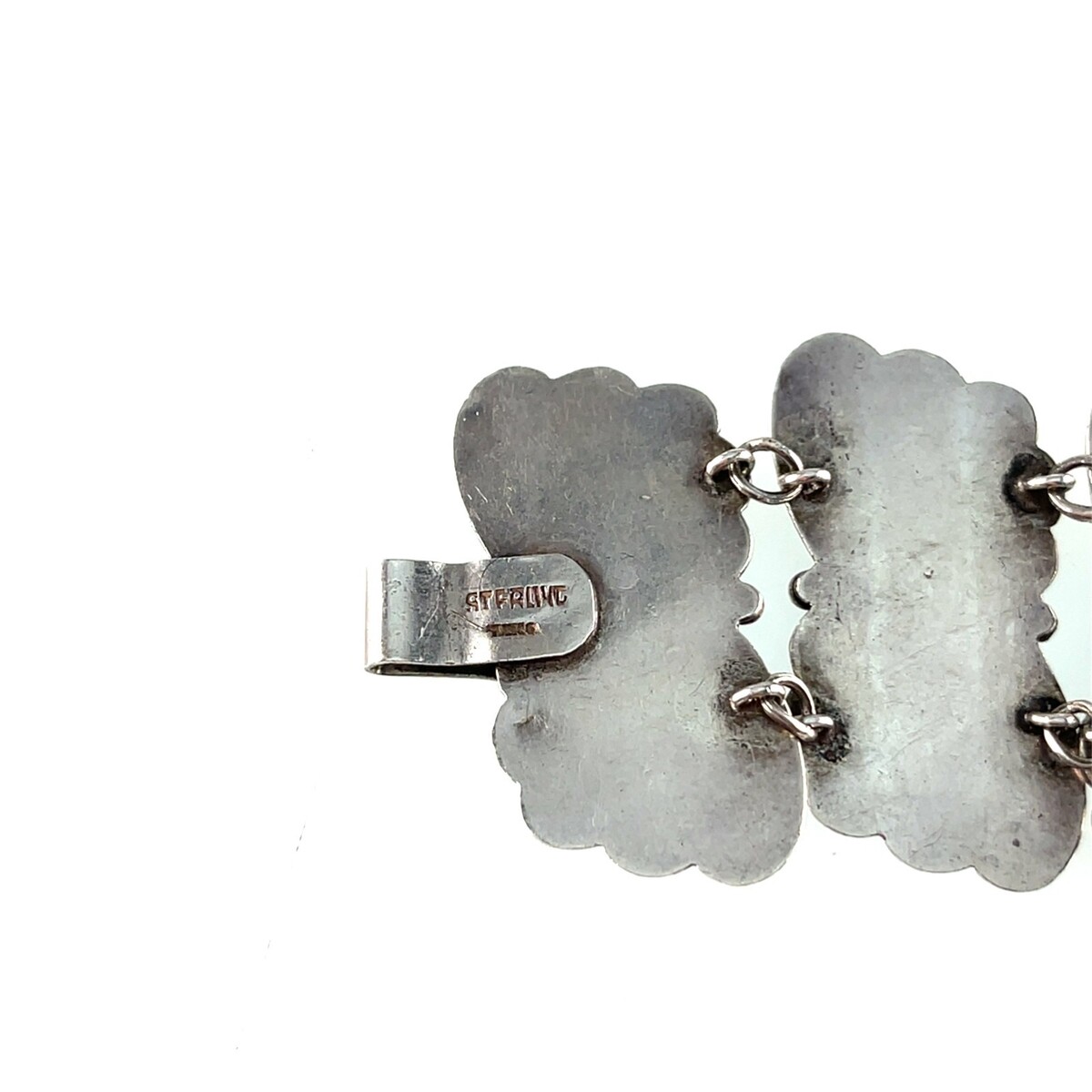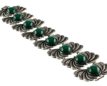 - Vintage Taxco Mexico Sterling Silver & Green Stone Panel Bracelet 7.25"