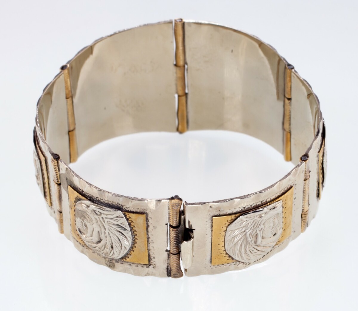 Vintage Taxco Zweifarbiges Sterling Silber Azteken Krieger Armband