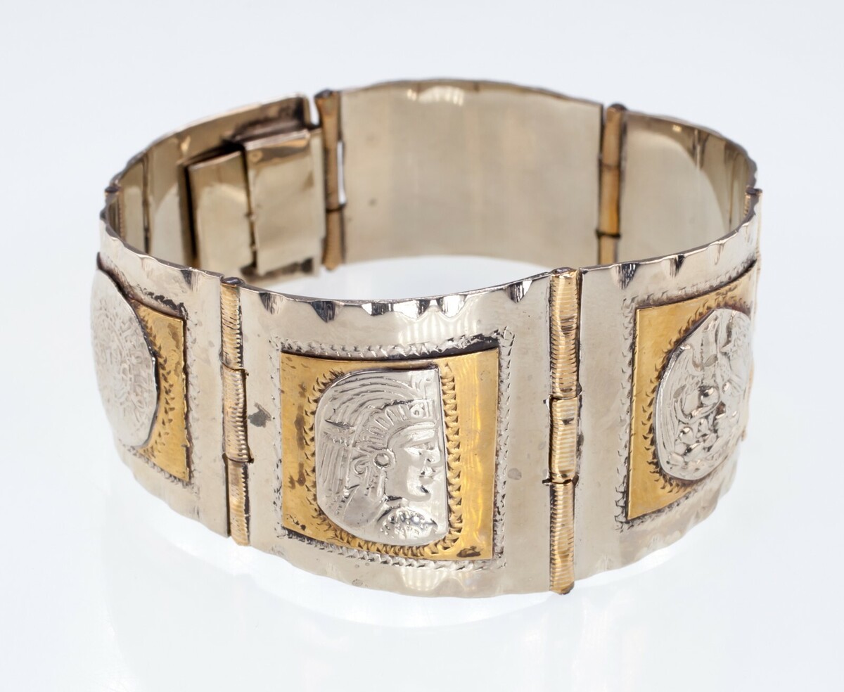 - Vintage Taxco Zweifarbig Sterlingsilber Azteken Warrior Armband